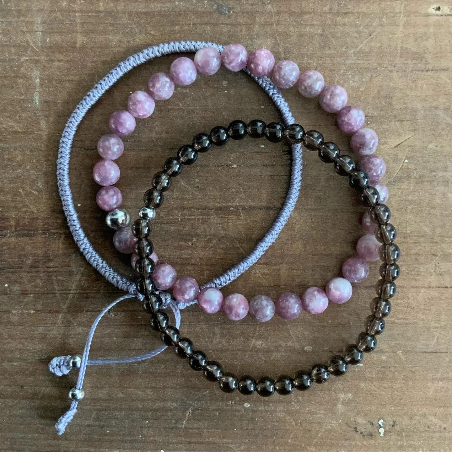 For those who prefer to wear their vibes (or just want to feel cute with a metaphysical flair), we offer two styles of bracelets - stretchable and adjustable sliding knot. Stretch bracelets can be made in any size (our size chart is here). Sliding knot bracelets are adjustable (16 cm to 19 cm, and can be custom made to fit smaller or larger).